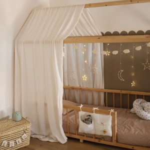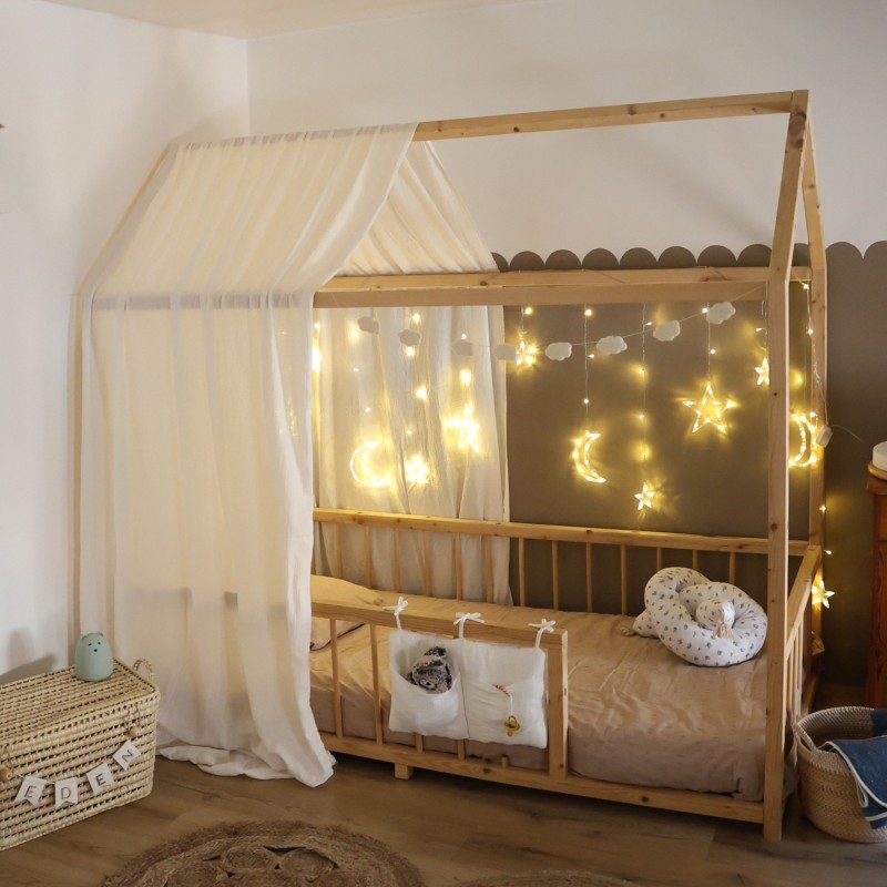 Afin de créer un univers de magie dans la chambre de votre enfant, le voile de lit cabane est indispensable ! C'est un habillage de lit qui décorera la chambre de votre enfant tout en le rassurant lors de son sommeil. Nos ciels de lit s'adaptent à la quasi-totalité des lits cabane. Cette dimension s'adapte particulièrement aux lits cabane Bosco Atmosphéra. Pensez à nos autres accessoires de lit pour harmoniser l'univers de votre enfant: pochette de lit, guirlandes décoratives...