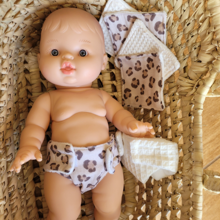 Tous les enfants adorent changer la couche de leur poupée! Nous vous proposons des kits de 2 couches et 4 lingettes dans différentes matières pour amuser vos enfants tout en travaillant leur motricité fine !
