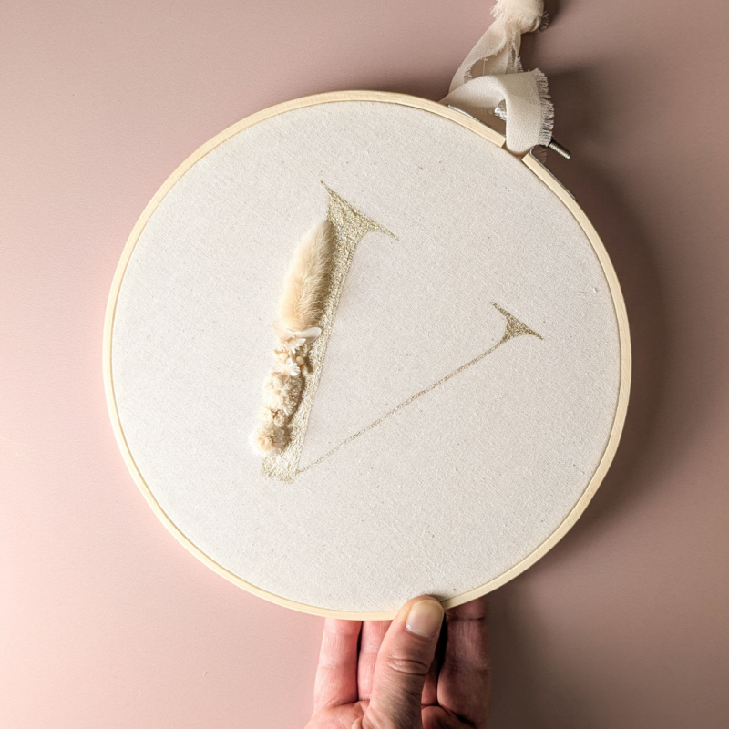 Le tambourin personnalisé à l'initiale de votre bébé apportera une touche douce et délicate dans sa chambre. Il s'intégrera parfaitement à votre décoration car vous pouvez le suspendre ou le poser.