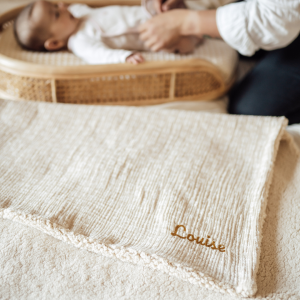 Vous recherchez une couverture toute douce et personnalisée au prénom de votre bébé? Celle-ci est parfaite pour accompagner bébé dès ses premiers jours. 100% fait main en France !