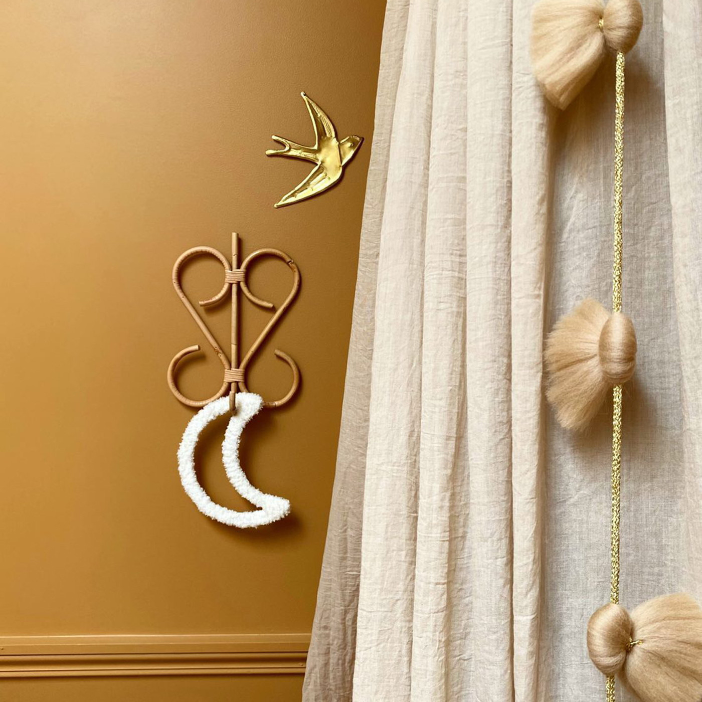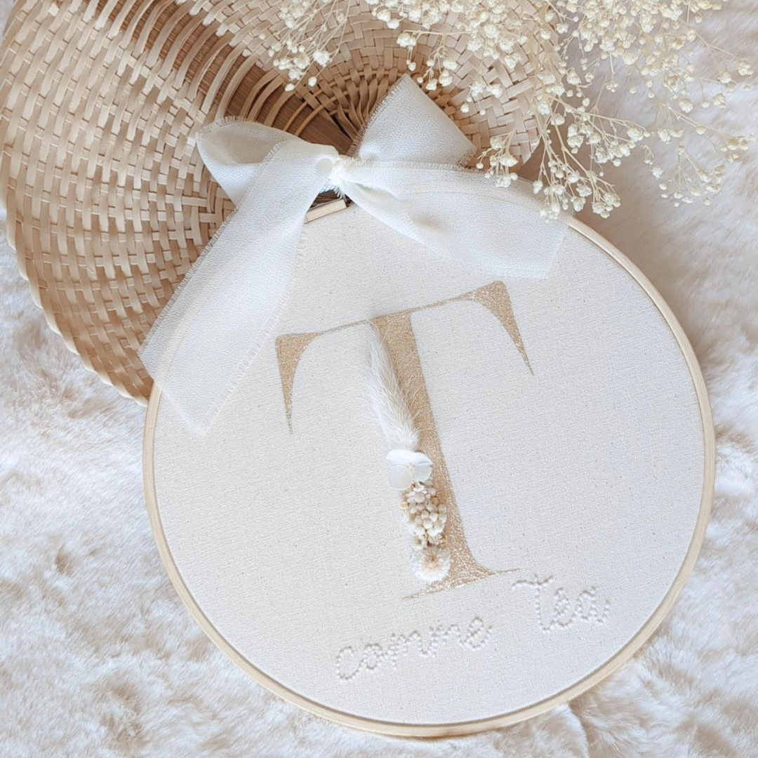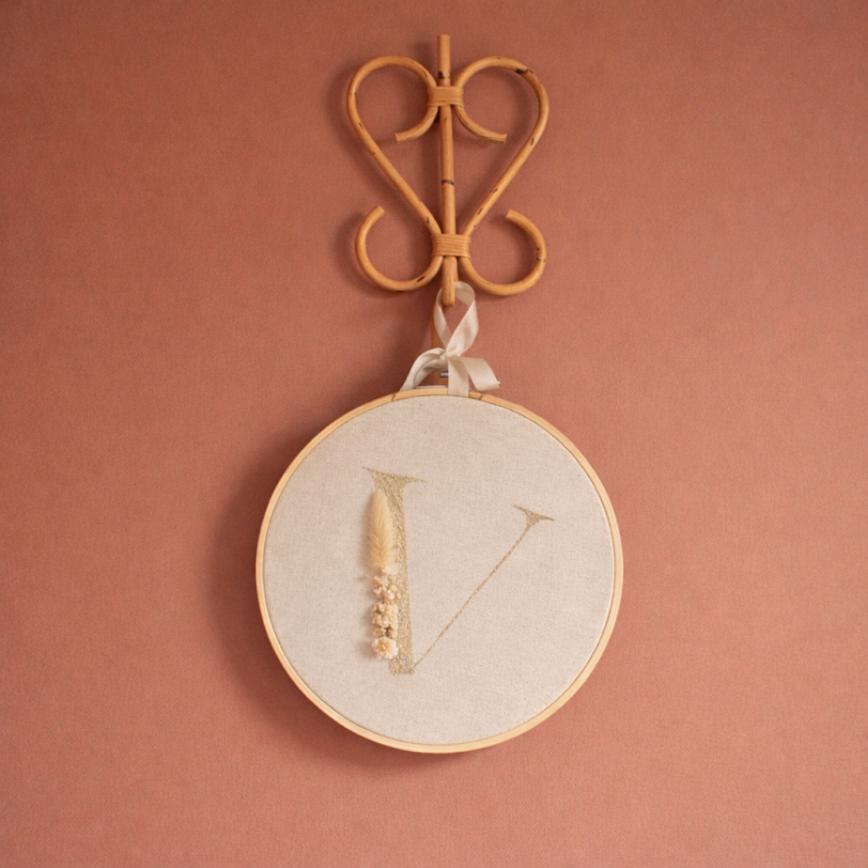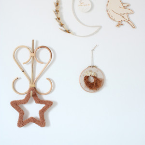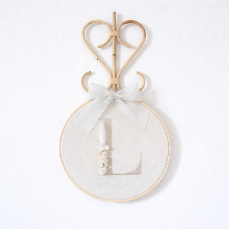 Associez le tambourin personnalisé à l'initiale de votre bébé avec la patère rotin cœur.