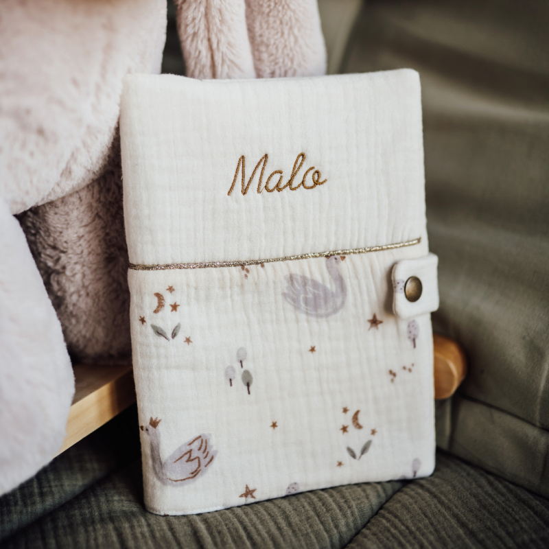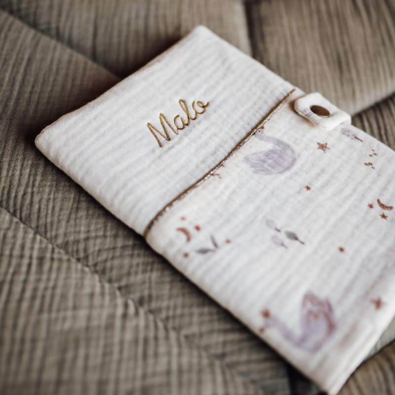 Vous recherchez un protège carnet de santé unique et personnalisé au prénom de votre bébé? Craquez pour ce tissu et une création 100% faite main en France.