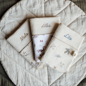 - Le prénom de votre bébé brodé (à la couleur de notre choix ou dites-nous si vous avez une préférence)
