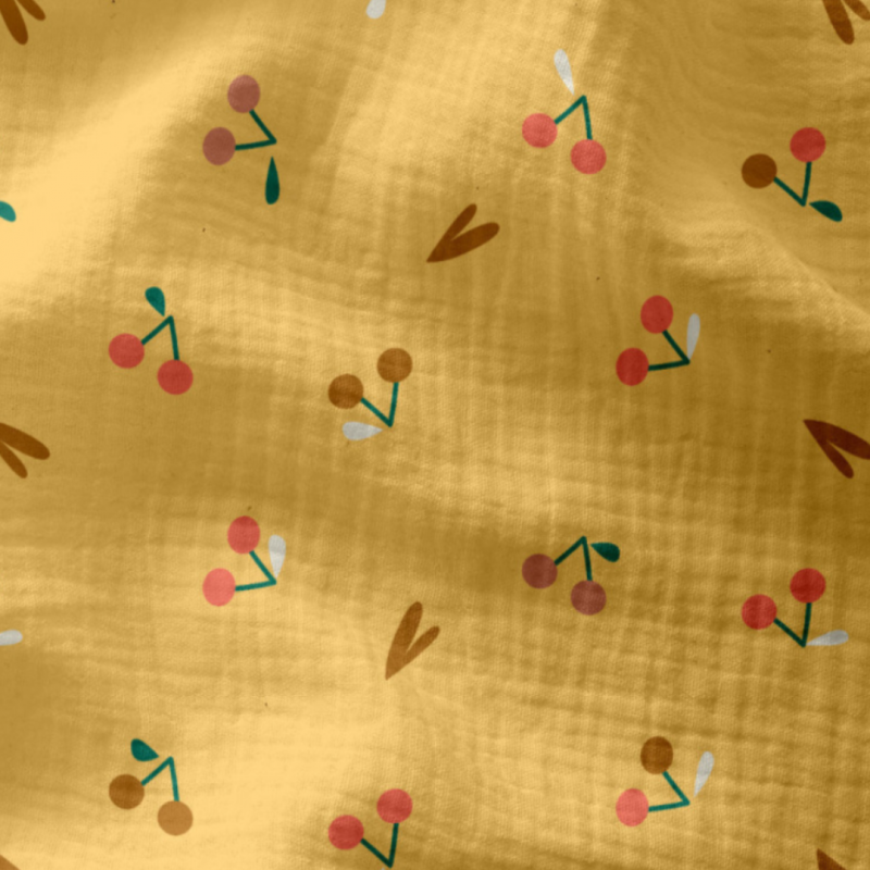 Le tissu en double gaze de coton cerises s'accordera parfaitement avec nos autres tissus unis.