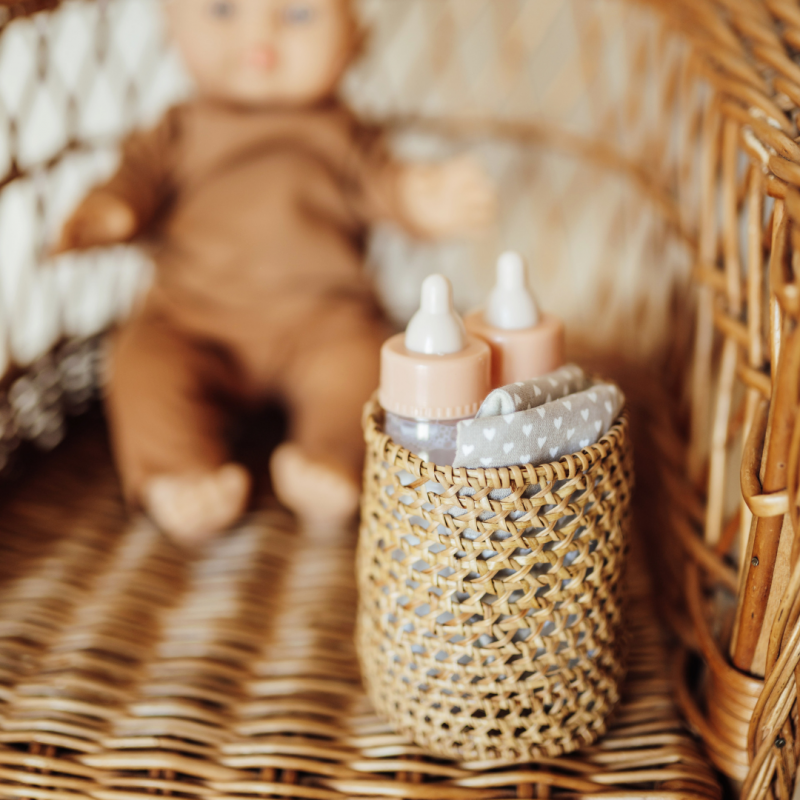 - Un pot en cannage : idéal pour mettre les affaires du poupon ou à utiliser comme pot à crayons, pot pour les cotons, etc.