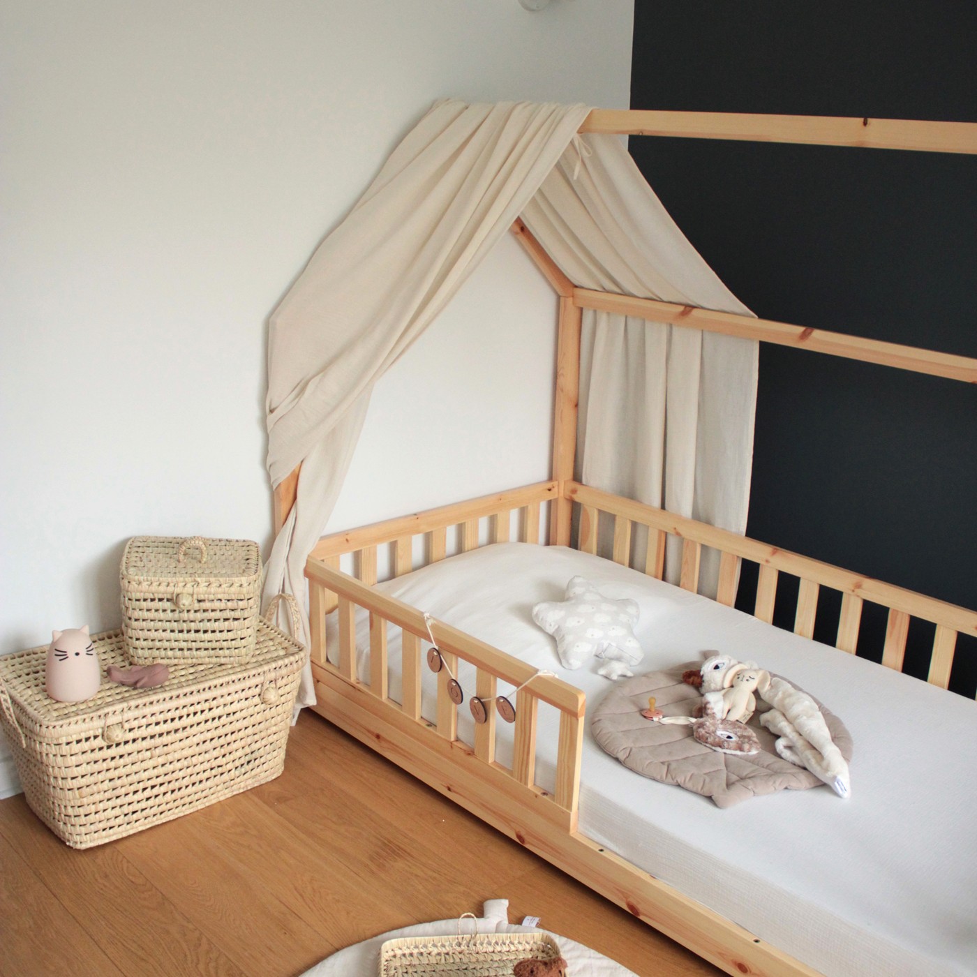 L'accessoire indispensable du lit cabane pour créer une ambiance cocooning et un univers réconfortant pour votre enfant tout en décorant sa chambre. Notre toile de lit est adaptable pour chaque lit cabane de deux ou trois barres horizontales. Cette dimension s'adaptent -entre autres- aux lits cabanes des marques Housswood (modèle Hérisson) et mon lit cabane modèle K. Découvrez nos autres accessoires de lit cabane à associer à votre ciel de lit: guirlande décorative ou lumineuse, embrase ou pochette de lit
