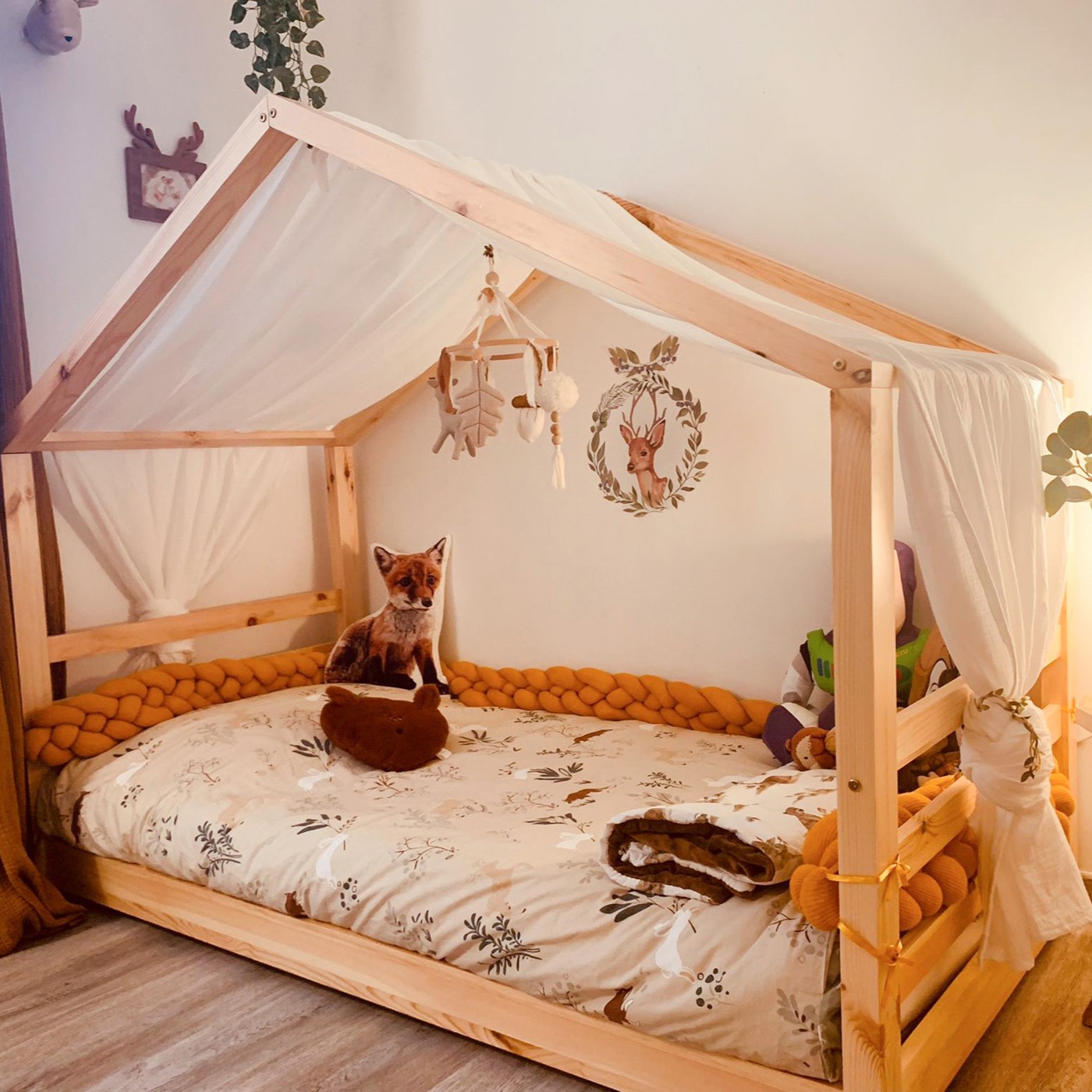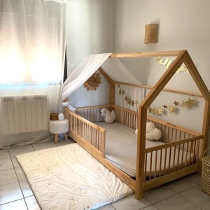 L'accessoire indispensable du lit cabane pour créer une ambiance cocooning et un univers réconfortant pour votre enfant tout en décorant sa chambre. Notre toile de lit est adaptable pour chaque lit cabane de deux ou trois barres horizontales. Cette dimension s'adaptent -entre autres- aux lits cabanes des marques Housswood (modèle Hérisson) et mon lit cabane modèle K. Découvrez nos autres accessoires de lit cabane à associer à votre ciel de lit: guirlande décorative ou lumineuse, embrase ou pochette de lit